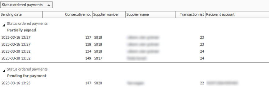 In the desktop component you can also monitor ordered payments. The Payment status button shows information about the payments which have been sent to the bank.