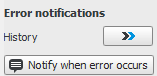 Choose who will be notified of an error via the Notify when error occurs button. The error messages are shown as notifications for the affected users in Message center.