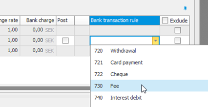 Transactions that do not relate to invoices, such as fees, interest or other payments, can be recorded at the same time as payments are confirmed. You can do this by either using the Posting button and entering the payment’s posting, or by selecting a bank transaction rule so that the posting is done automatically.