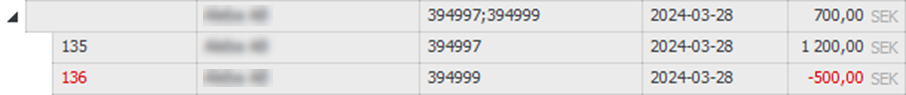 If the debit invoice contains an OCR number, only the debit invoice’s OCR number is sent as reference to the recipient of the payment (with a deduction for the credit invoice). When confirming the system will automatically match both the debit and the credit invoice.