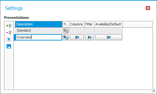 Sie geben zuerst eine Beschreibung für die Lookup-Präsentation ein. Über die Schaltfläche Übersetzungen