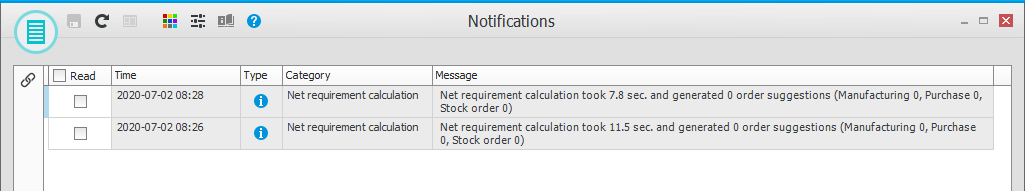 Sie verwenden die Nettobedarfsermittlung, um die Bedarfsplanung auf der Grundlage des Kundenauftragsbestands sowie etwaiger vorhandener Verkaufsprognosen durchzuführen. abgeschlossen wurde oder eine Wechselkursaktualisierung fehlgeschlagen ist. Es kann sich auch um verschiedene Nachrichten von handelnMonitor ERP System AB, z. B. um eine Benachrichtigung, dass eine neue Version von verfügbar Monitor ERP ist. Nachrichten/Benachrichtigungen über neue Updates und verfügbare Versionen werden an Benutzer gesendet, die die Rollen Systemadministrator und ERP-Manager haben.