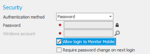 - Geben Sie ein Passwort in das Feld Passwort ein. Dieses Passwort wird dann für die Anmeldung am mobilen Client verwendet.