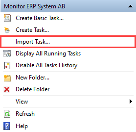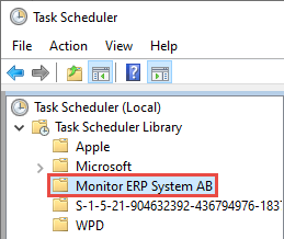 - Wählen Sie den Ordner im Aufgabenplaner aus, in dem die Aufgabe gespeichert wird, normalerweise Überwachen Sie das ERP-System AB.