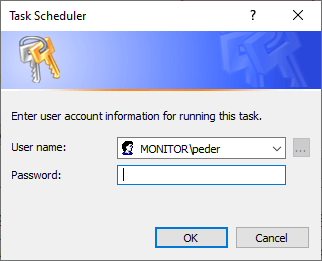 Schließlich wird dieses Dialogfenster angezeigt, in dem Sie das Kennwort für das Windows-Konto eingeben müssen, das die Aktivität ausführen soll. Klicken Sie dann auf OK.