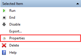 Wählen Sie dann Eigenschaften für die ausgewählte Aufgabe im Feld ganz rechts.