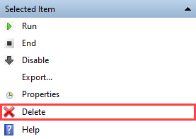 Wählen Sie dann Löschen für die ausgewählte Aufgabe im Feld ganz rechts.
