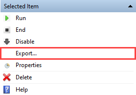 Wählen Sie Exportieren... und speichern Sie dann die Sicherungsaufgabe auf der Festplatte als XML-Datei.