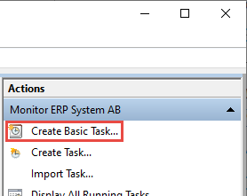 Wenn Sie den Ordner Monitor ERP System AB markiert haben, wählen Sie im rechten Abschnitt mit der Bezeichnung Actions die Option Create Basic Task... (Grundlegende Aufgabe erstellen...).