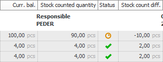 i Status column. For a reported stock count which must be approved once again, no stock transaction is created and no balance is updated. In this case, the following symbol