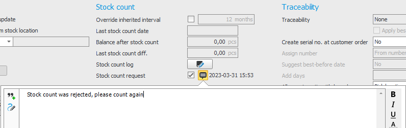 Please note that, at present, stock count approval can only be applied for stock counts carried out in the Stock count in list procedure. For stock counts carried out in the Stock count there is no support for approval as yet.