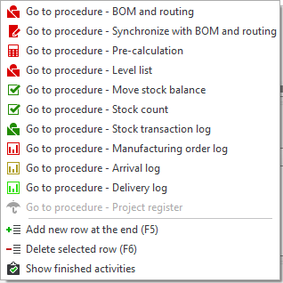 In Monitor ERP there is a context menu which you open by right-clicking.