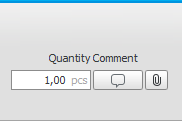 On the main row in the window you enter the Quantity of the part to be configured, provided it is a quote row or a customer order row which is concerned. It is the same quantity as in the Quantity field on the quote row or customer order row. This field is not available for manufacturing orders. There you always see the quantity on the order. On the main row in the window you can also enter an internal Comment and link Files to the configuration. These linked files and comments for configured parts can be seen in the Part register, in the Planning window tab, and in Manufacturing order information.
