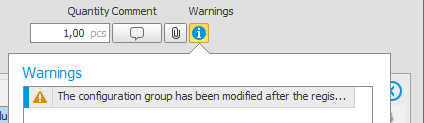 When there is a confirmed configuration on a quote row or order row, the configuration button is shown with a different symbol