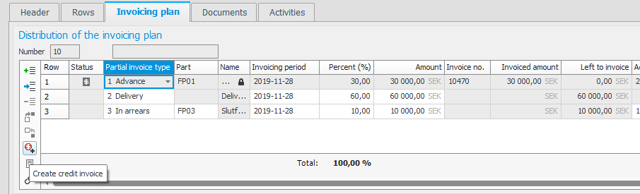 Please note! It is only possible to create a credit invoice if the advance/in arrears has been invoiced.