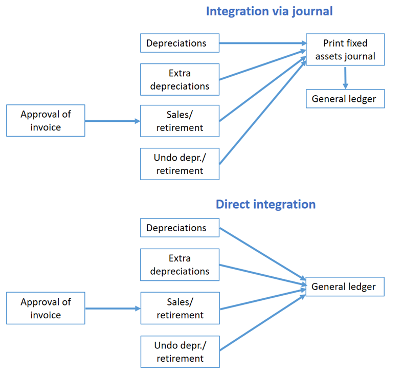 In this procedure you can depreciate fixed assets in the register. In addition to scheduled depreciation, calculated depreciation is also handled.