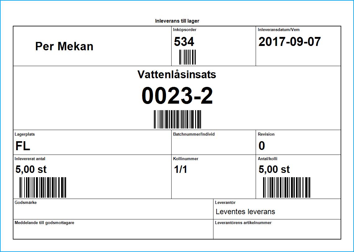 Skriv ut pallflagga för märkning av inkommande gods.