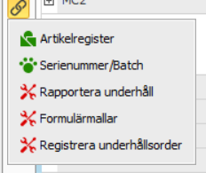 Du kan länka direkt till rutinen Rapportera underhåll från listan, för att rapportera underhållet av det valda verktyget.